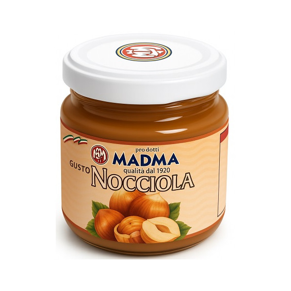 Pasta nocciola, in barattolo da 100 g da Madma. Preparato in pasta di nocciola, ideale per aromatizzare gelati, creme ed impasti da cottura per dolci, biscotti e torroni.