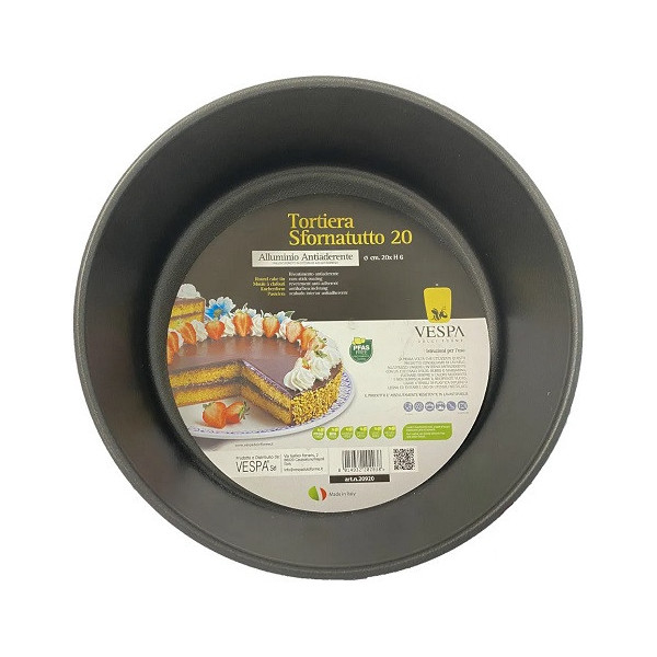 Tortiera sfornatutto tonda alta Vespa: teglia tonda in alluminio antiaderente, tipo sforna-tutto alta o universale diametro 20 cm altezza 6 cm, adatta per friggitrice ad aria tonda