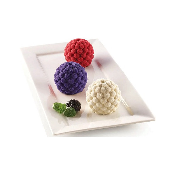 Lo Stampo Segreti del Bosco è uno stampo in Silicone grigio da Silikomart per tortine a forma di frutta More o Lampone con effetto tridimensionale dal diametro di 7 cm ed altezza 6 cm