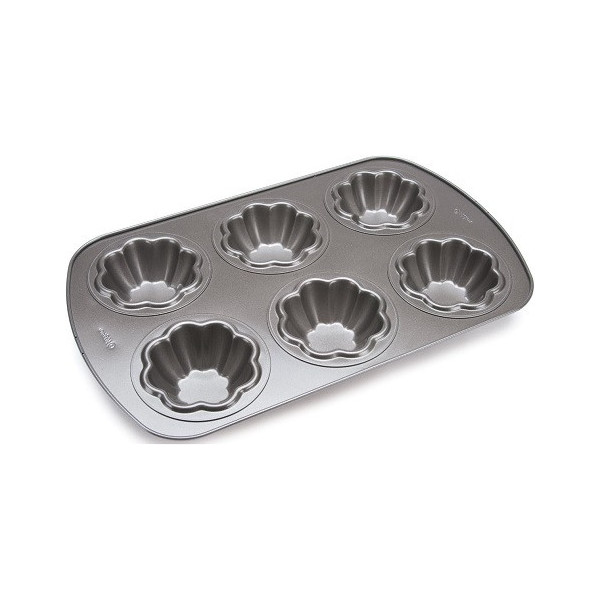Flowers o Fiore da Decora teglia per ciambelle a forma di fiore: stampo in acciaio spesso ed anti-aderente, ideale per cuocere 6 ciambelle a forma di fiore di diametro 7,5 x h 2,3 cm