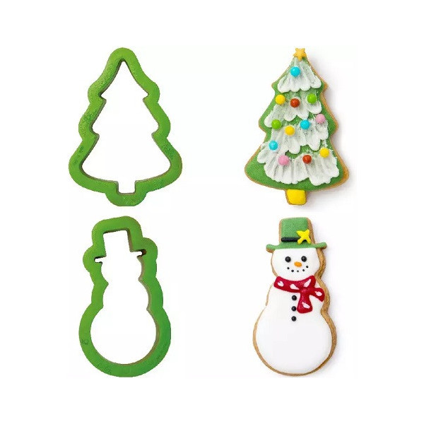 Albero di Natale e Pupazzo di Neve: 2 stampi in plastica ideali taglia-biscotti a forma di Albero di Natale di 8 x 2,2 cm e Pupazzo di Neve di 8,5 x 2,2 cm da Decora.
