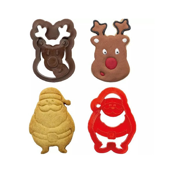 Babbo Natale e Testa di Renna: 2 stampi in plastica ideali taglia-biscotti a forma di Babbo Natale e Testa di Renna di dimensioni 8 x 2,2 cm da Decora.