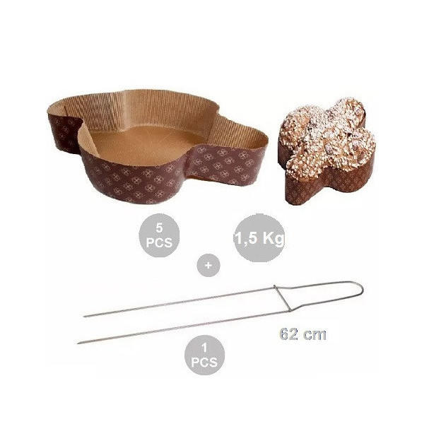 Kit spillone lungo 62 cm con 5 stampi per colomba artigianale in carta cellulosa calandrata usa e getta o monouso da 1,5 Kg