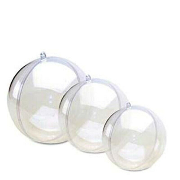 Pallina o sfera in plexiglas apribile da 6 o 8 cm. Sfera con chiusura ad incastro, usala come scatolina portaoggetti, ideale da decorare, confezionare ed appendere.