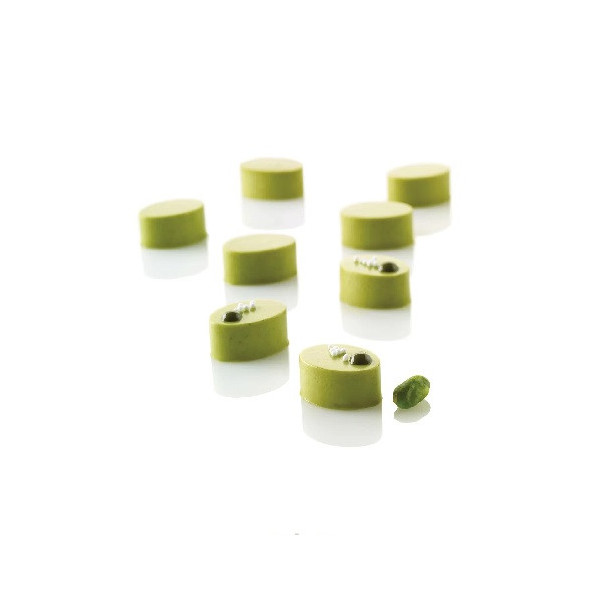 Stampo in Silicone micro Oval o Micro Ovali o Oblunghi, per semifreddi e preparazioni forno per 35 dolci ovali, lunghi 26,5 mm x 19,5 mm ed altezza 12,5 mm, linea Top White di Silikomart