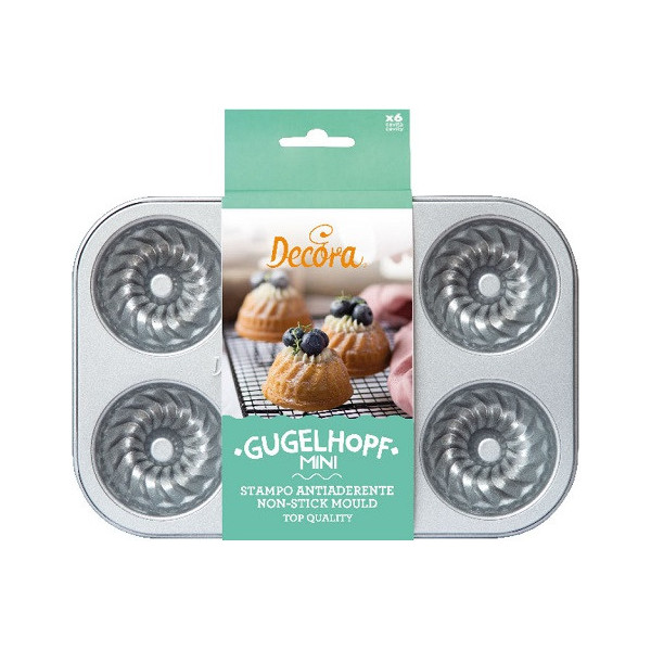 Mini kugelhopf Decora teglia per ciambelle a forma di Mini kugelhopf: stampo in acciaio spesso ed anti-aderente, ideale per cuocere 6 ciambelle a forma Mini kugelhopf di diametro 7,5 × h 2,3 cm