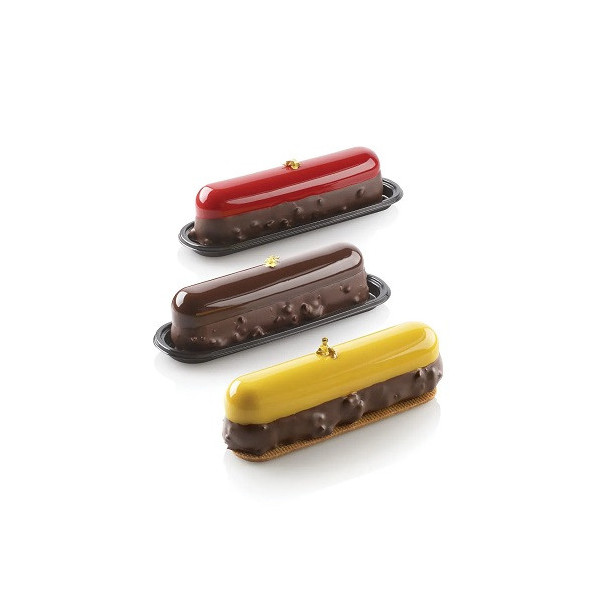 Set 10 Vassoi rettangolari 26x8 o 28,5x12 cm: vassoi in plastica neri riutilizzabile ed antigraffio, con area antiscivolo alti 7mm, di Silikomart. Ideali per esporre, trasportare e prelevare torte.