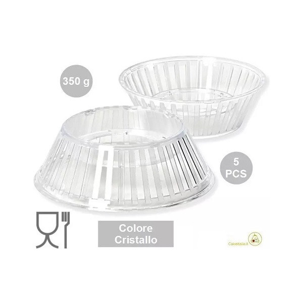 - da 350 g in confezione da 5, diametro maggiore 101 mm, diametro minore 69 mm, altezza 33 mm