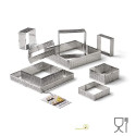 Con lo stampo ad anello quadrato per monoporzioni puoi realizzare basi per crostatine di varie misure. L'anello in acciaio inox micro-forato è adatto all'uso in forno per la realizzazione di basi, puoi usarlo anche come tagliapasta o cutter.