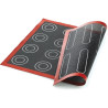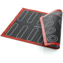 Grazie alle impronte riportate su entrambe le facce questo tappeto per cottura micro-forato in Silicone è ideale sia per la cottura di choux e mini choux (lato A) ed éclairs (lato B), ma anche biscotti, petits-fours, pane e pizza.