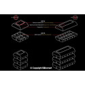 La confezione è stata progettata seguendo una logica di modularità che permette di esporre esattamente 20 Macadò da 6 nelle teglie 60x40 utilizzati dai professionisti. Macadò può essere personalizzato con un adesivo, un nastro o con qualsivoglia materiale di decoro normalmente utilizzato in pasticceria.