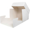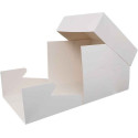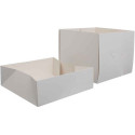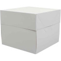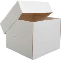 Scatola per torte alte, con coperchio e base quadrata di lato da 26,5 a 50,5 cm in cartoncino bianca per uso alimentare, imbustata singolarmente, ideale per trasportare e conservare dolci o torte.