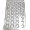 Stampo in policarbonato professionale, a colatura libera, per cioccolatini lenti o lingue di gatto con fondo grecato. Stampo da utilizzare eseguendo una colatura libera del cioccolato, sopra lo stampo mediante macchina tipo One-shot oppure manualmente con una classica sac a poche.