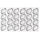 Stampo in Tritan per 24 praline di cioccolato, di dimensioni 44x28 h 15 mm e volume 8 ml, suddivise per la lunghezza in due parti simmetriche un lato liscio e uno il riflesso texturizzato, che permettono di giocare con molti colori e finiture.