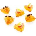 L'innovativo stampo microforato è in silicone e fibra di vetro, con cavità a triangolo per dolcetti triangolari di lato 6 cm ed alti 2,5 cm.