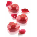 Lo stampo SF200 è uno stampo in silicone per 15 dolcetti a forma di cuoricini mignon, ogni cavità è da 30 ml, lunga 45 mm x 44 mm x h 24 mm, della linea Top White effetto 3D di Silikomart.