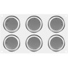 Splash 110 Silikomart: stampo in silicone bianco e un separatore in ABS, da Silikomart, per 6 tortine a forma di semisfera con effetto tridimensionale dal diametro di 7,1 cm ed altezza 3,65 cm