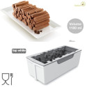 Kit Woody 1100 o catasta di legna o tronchetti Legno da Silikomart è composto da: 2 stampi in silicone bianco Top White accoppiati che insieme formano una catasta di legna dal volume di 1100 ml, lunghi 24 cm, larghi 20 cm (accoppiati) ed alti 8,25 cm + supporto in plastica
