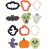 Stampini in plastica per creare formine di pasta di zucchero o biscotti con forme a tema per la festa di halloween.
