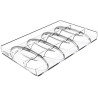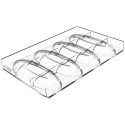 Stampo Cioccolato Tavoletta rettangolare onda dal peso di 50 g, composta da 4 cavità lunghe 120 mm, larghe 60 mm ed alte 6,3 mm. Ogni tavoletta è suddivisa in 10 quadretti.