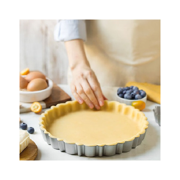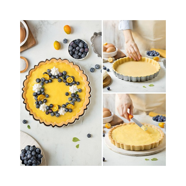 Crostata tonda Design Tart di Decora da ø20 a ø30 cm: forma per crostata tonda con bordo festonato e fondo mobile alto 3 cm in metallo antiaderente di alta qualità