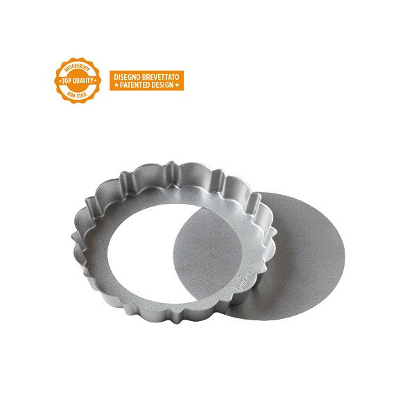 Design Tart Decora Stampo Crostatina Tonda: formina per crostatina tonda con bordo festonato e fondo mobile di Ø8 x H3 cm in metallo antiaderente di alta qualità