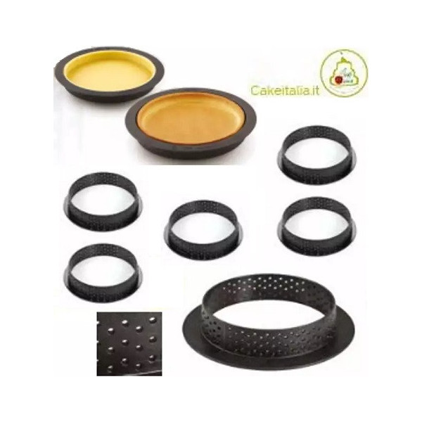 Set 6 Tarte Ring Round ø8xh2 cm Silikomart: anelli microforati tondi, usati come stampi forno, sono ideali per realizzare basi di pasta frolla per crostatine o tortine tonde. o come tagliapasta o cutter.