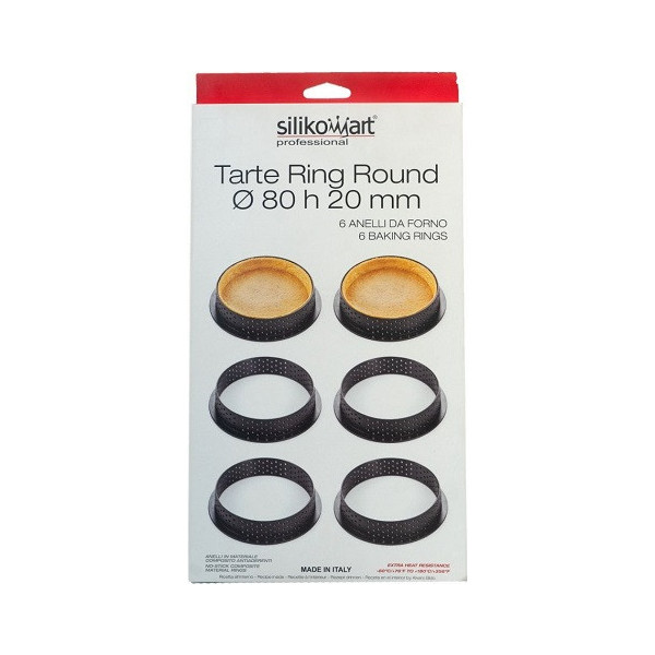 Set 6 Tarte Ring Round ø8xh2 cm Silikomart, anelli microforati tondi.