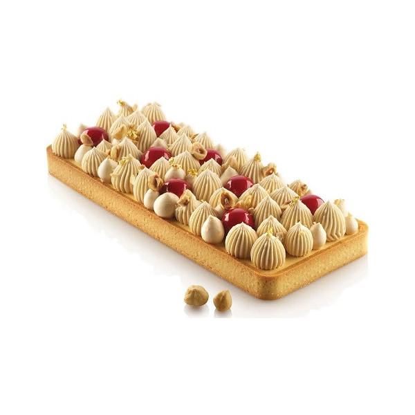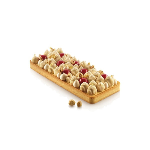 Il Kit Tarte Ring Rectangular da 27 cm: stampo Crostata o Tarta Rettangolare da 27 cm di Silikomart è composto da un Anello rettangolare per la base e uno stampo in silicone per la decorazione