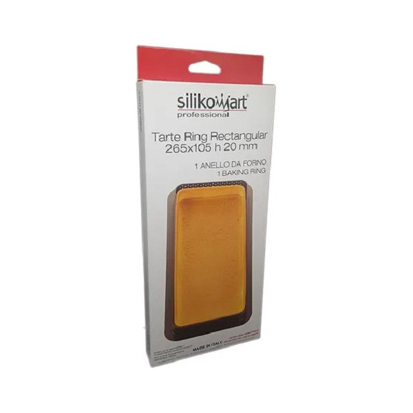 Tarte Ring Rectangular 26,5x10,5xh2 cm Silikomart, ideale per realizzare basi di pasta frolla per torte rettangolari o come cutter o tagliapasta.