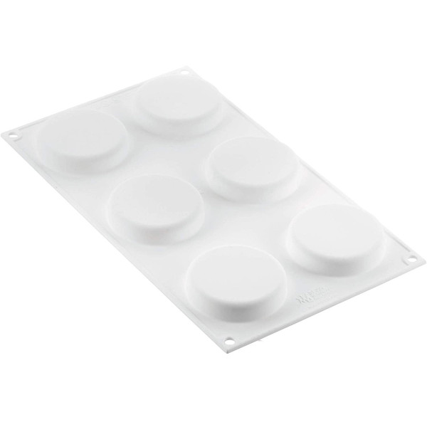 - 1 stampo in silicone con 6 cavità tonde da 6,7 cm per realizzare top da adagiare sopra alla pasta frolla.