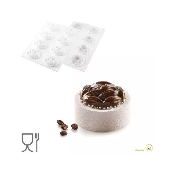 Forme Cavità Stampo: 8 cavità tondeggianti con decoro fave di cacao