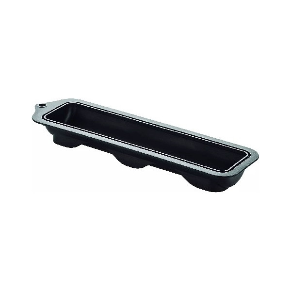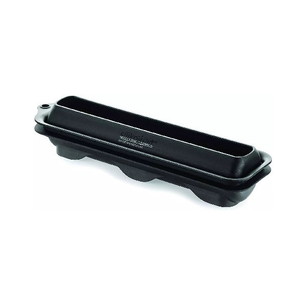 Turin 620 Stampo T-Plus+ da Silikomart: stampo forma allungata e sottile, sfilatino o gianduiotto da 23 cm e volume di 620 ml, in materiale T-Plus+ colore nero, con incavo e supporto in TritanTM