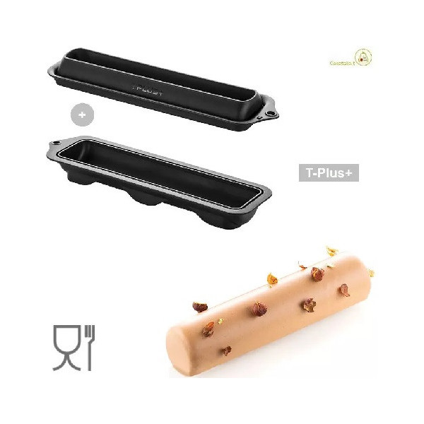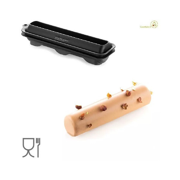 Rome 525 Stampo T-Plus+ da Silikomart: stampo a forma di cilindro allungato e sottile, lungo 23 cm, largo 5,5 cm, alto 5 cm dal volume di 525 ml, in materiale T-Plus+ colore nero, ideale per torte, dolci, sfogliati, lievitati e panini e pane in cassetta.