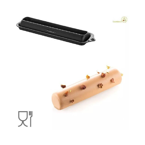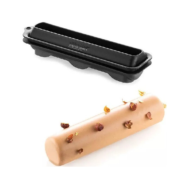 Rome 525 Stampo T-Plus+ da Silikomart: stampo a forma di cilindro allungato e sottile, lungo 23 cm, largo 5,5 cm, alto 5 cm dal volume di 525 ml, in materiale T-Plus+ colore nero