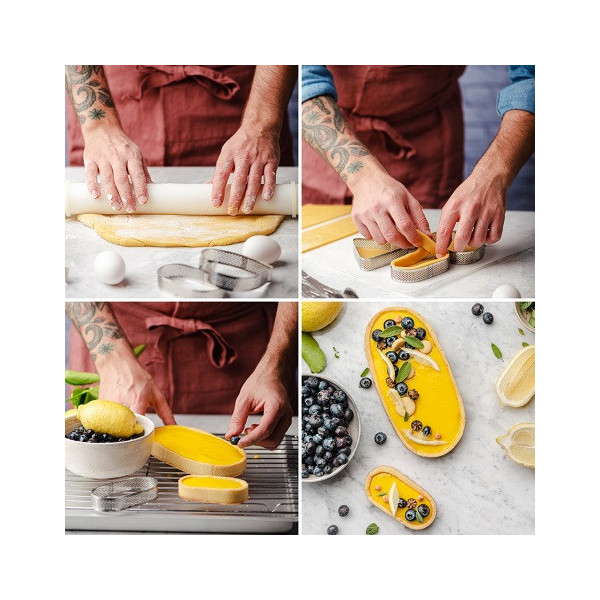 Stampo, da forno, ideale per multi-porzioni o per basi di torte crostate ovali, è ideale anche come tagliapasta o coppa pasta.