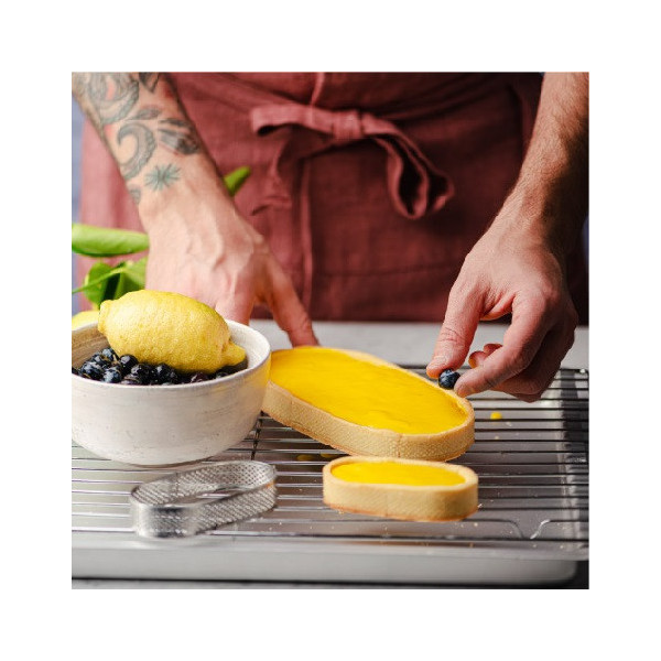 I bordi microforati dello stampo ad anello sostengono la base della crostata evitandone il collasso in cottura e garantendo una doratura ottimale della frolla.