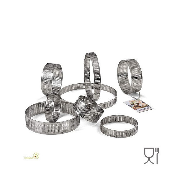 L'anello micro-forato in acciaio inox micro-forato è adatto all'uso in forno per la realizzazione delle basi, puoi usarlo anche come tagliapasta o cutter.