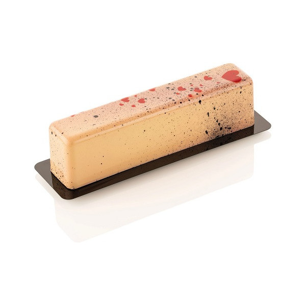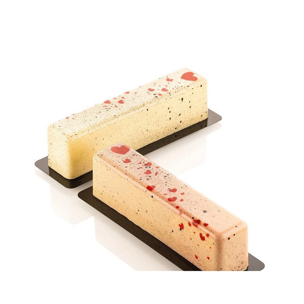 Forma: allungata, squadrata, a base rettangolare, adatta perfettamente al dolce realizzato con lo stampo in T-Plus+,