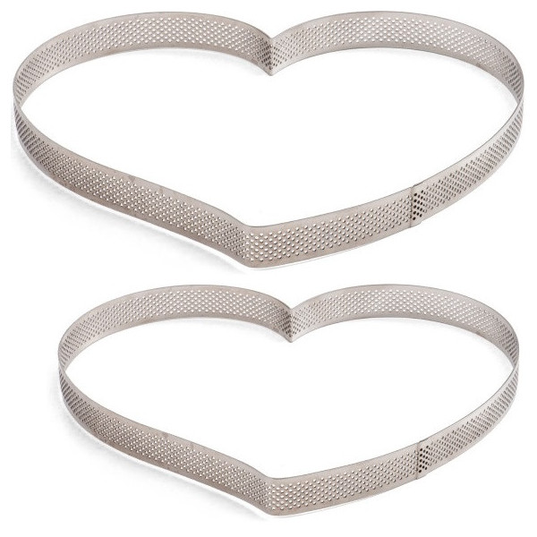 Stampo ad anello a cuore per crostate e torte di 18x16xh3,5 cm, in acciaio inox. Usalo per basi di torte a cuore o come cutter o tagliapasta a cuore.