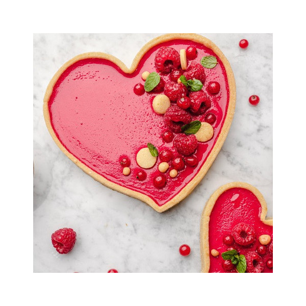 Kit Tarte Ring Amore da Silikomart: 1 stampo ad anello a cuore per la base di crostate o torte da 205 mm x 19 cm + 1 stampo in silicone da 19 cm x 16 cm per una mousse o un cremoso a cuore