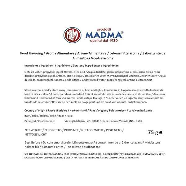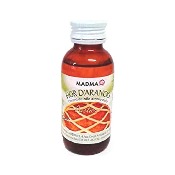 Aroma Naturale Fior d'Arancio Madma 75 g: flacone in PET di aroma liquido, pronto all'uso, ideale per aromatizzare la pastiera napoletana, dolci, creme e biscotti.