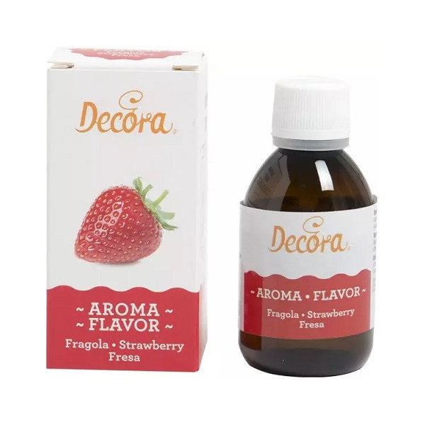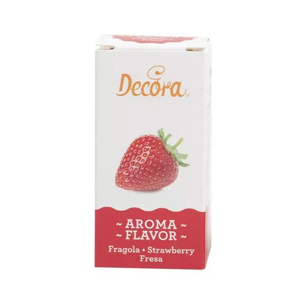 L'aroma fragola di Decora è un aroma naturale liquido, di alta qualità, che ricrea fedelmente il profumo e il sapore dell'essenza della fragola per uso alimentare nelle torte, dolci, biscotti e frollini, cioccolato, gelati e sorbetti.