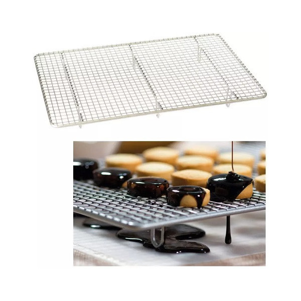 Griglia raffredda torte e di colaggio, in metallo antiaderente, a maglie strette, di forma rettangolare di dimensioni 26 x 38 cm da Decora, da usare per raffreddare preparazioni dolci e salate