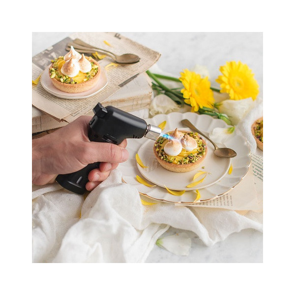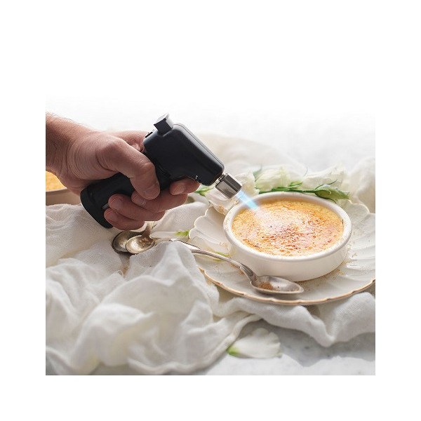 Il mini caramellatore o mini caramellizzatore o mini cannello a gas ricaricabile è un mini bruciatore o minitorcia da cucina ideale per preparazioni dolci e salate. Usalo per caramellare, fondere, tostare, preparare per crème brûlée, meringhe o nelle preparazioni salate per spellare, tostare e ottenere superfici croccanti anche sulla carne come arrosti o bistecche
