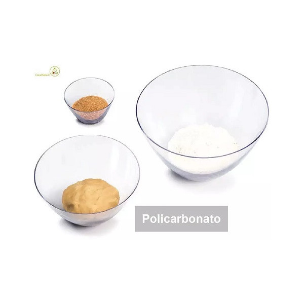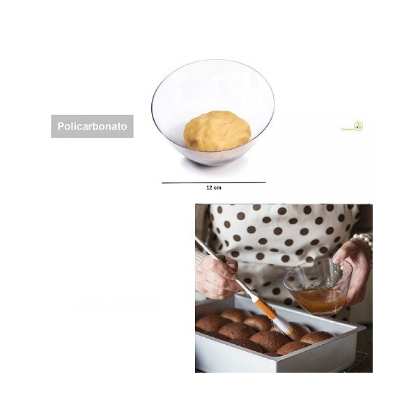 Ciotola in policarbonato trasparente di ø12 cm o ø28 cm, resistente agli urti. Ciotola ideale per conservare, contenere, montare, mescolare ingredienti e preparare impasti da pasticceria.