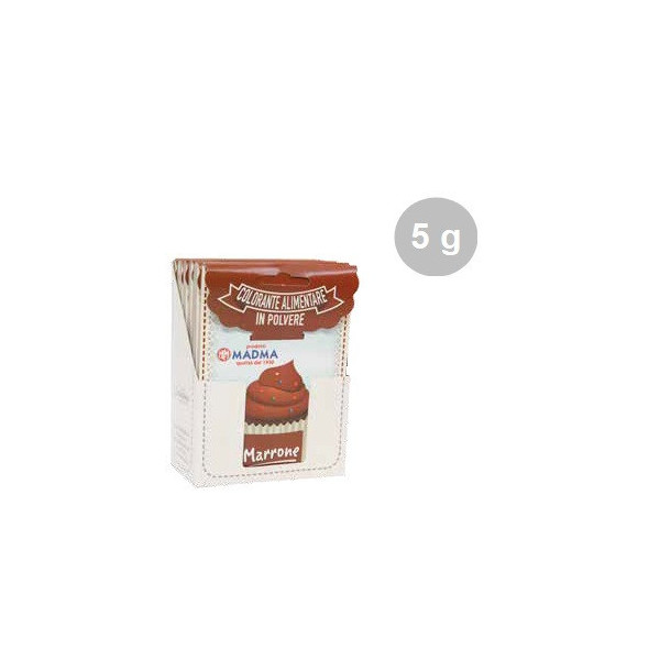 Colorante alimentare in polvere idrosolubile marrone, concentrato, in bustina da 5 g, di Madma. Ideale per colorare pasta di zucchero, ghiaccia, panna e creme.