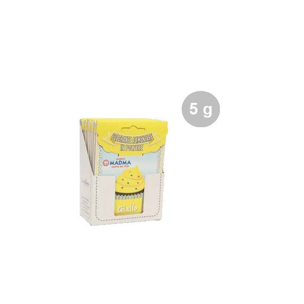 Colorante in polvere idrosolubile giallo di Madma in bustina da 5 g Colorante in polvere giallo, uso alimentare, idrosolubile in bustina da 5 g, di Madma Colorante in polvere giallo, uso alimentare, idrosolubile in bustina da 5 g, di Madma 5 gr Colorante Giallo alimentare in polvere
