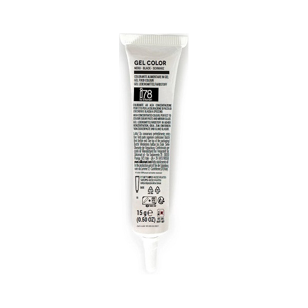 Colorante in gel nero principalmente indicato per masse ed impasti in confezione da 28 g, basta una piccola quantità per dare una tonalità di colore più intensa, decisa e splendente alle tue creazioni