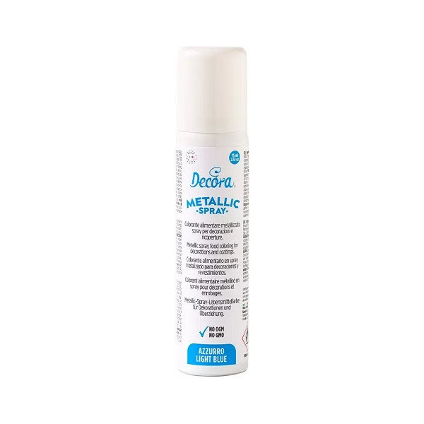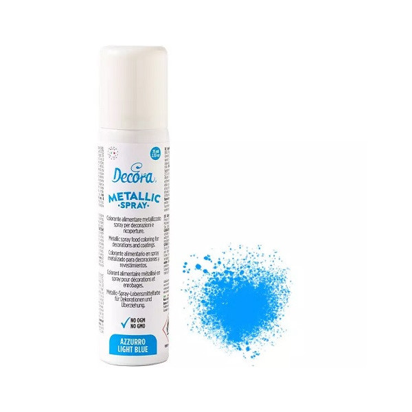 Spray Azzurro Metallizzato da 75 ml di Decora: colorante spray azzurro ad effetto metallizzato per uso alimentare, con colori di astrazione ad origine naturali.